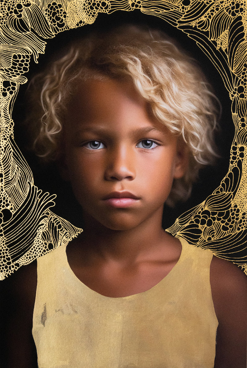 Marie De Decker allie photographie et dorure pour créer des portraits alliant modernité et élégance intemporelle. S'inspirant des traditions qui utilisent l'or et les pierres précieuses comme symboles de spiritualité et de pérennité, son travail connecte le spectateur à des pratiques qui transcendent les siècles. Ce mélange d'ancien et de nouveau enrichit chaque œuvre, la rendant à la fois contemporaine et ancrée dans le patrimoine culturel.